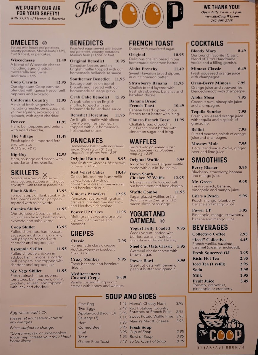 With rave reviews highlighting impeccable service and delicious, homemade flavors, The Coop is an enticing destination for breakfast lovers in Waukesha!